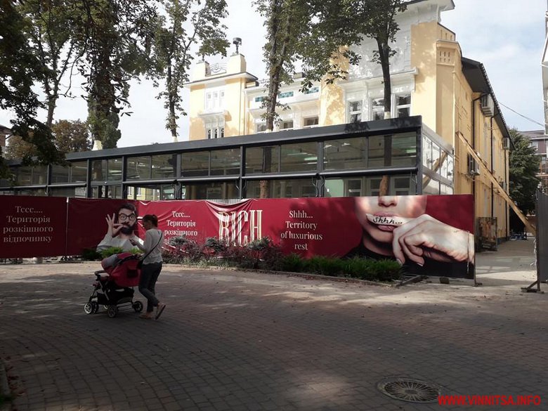 На площі Європейській триває будівництво критого літнього майданчика біля ресторанного комплексу. Роботи за адресою вулиця Грушевського, 30 виконуються без погоджень та дозволів, передбачених законодавством.