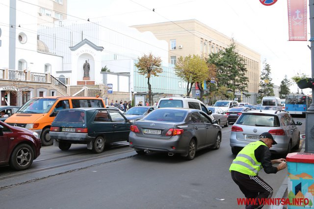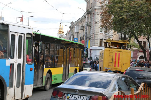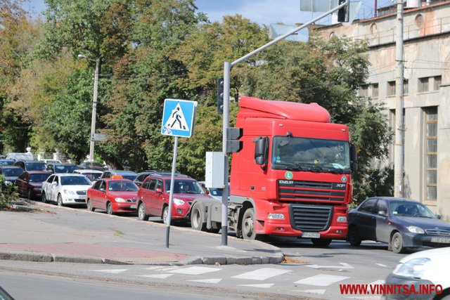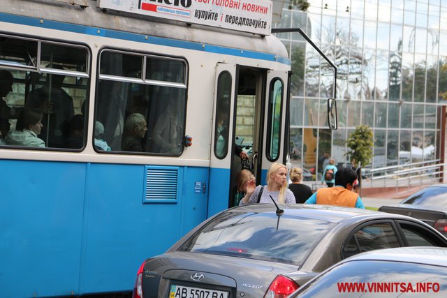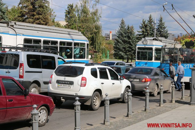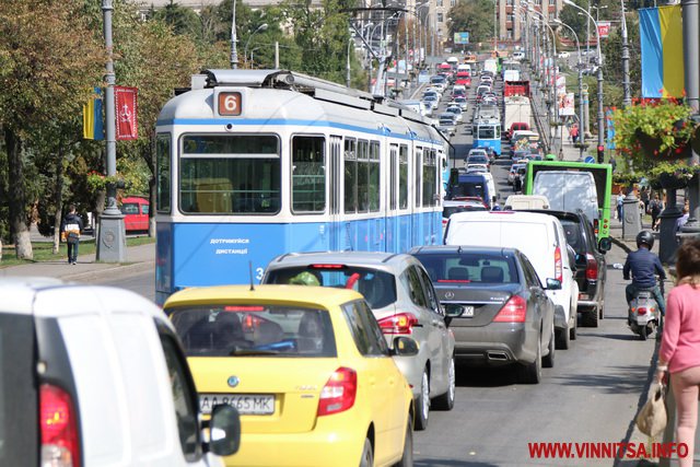 8 вересня проїхати центром Вінниці досить складно. Тягучка приватного і громадського транспорту – від початку Соборної до завершення мосту. Через довгі черги в русі пасажири деяких трамваїв просять водіїв випустити їх, не дочекавшись зупинки.