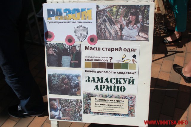 Біля міської ради розмістили «міні-цех» з виготовлення маскувальної сітки. Діти і дорослі могли власноруч долучитися до акції, таким чином допомігши українським захисникам. Інструктор показував, як правильно прив’язувати клаптики тканини. Сітку створювали із порізаних непотрібних речей тьмяних і темних відтінків.