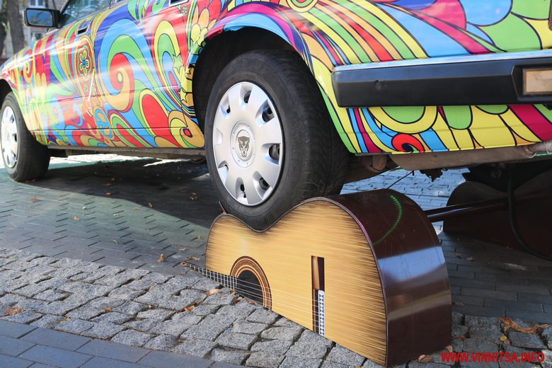 Раритетний автомобіль розмістили на оригінальні підставки у формі гітар.