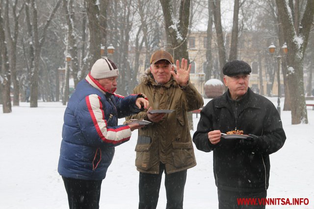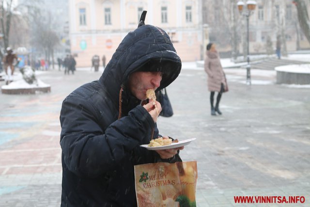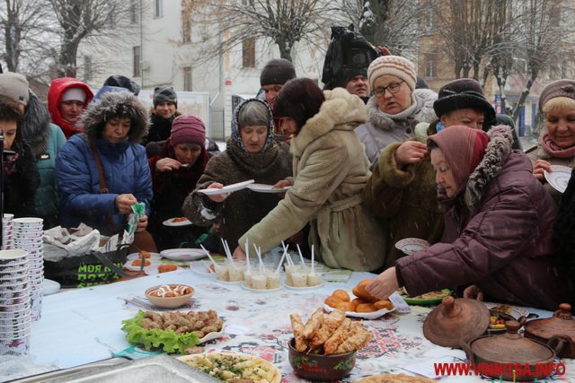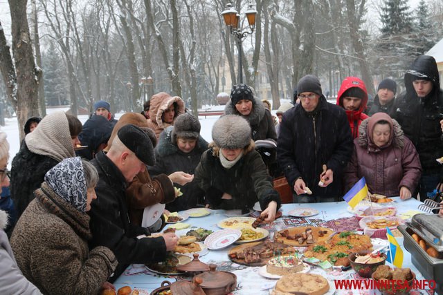 22 січня у Вінниці на Європейській площі до відзначення Дня Соборності України усіх охочих безкоштовно пригощали традиційними українськими стравами.