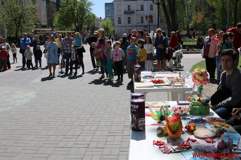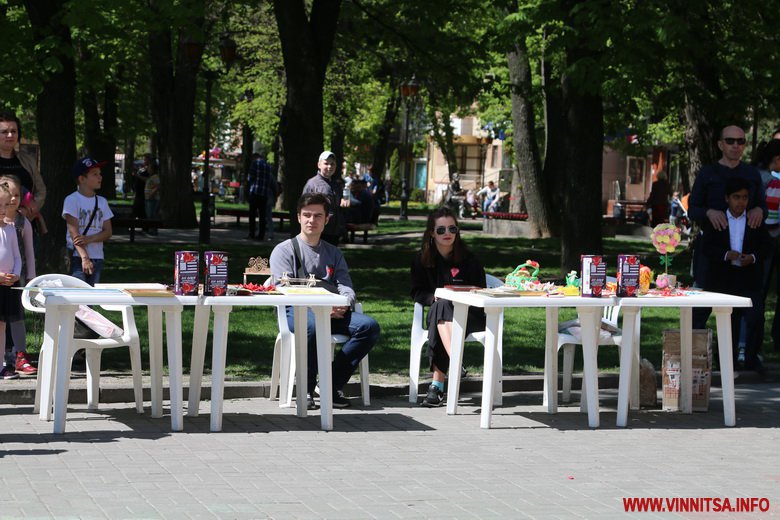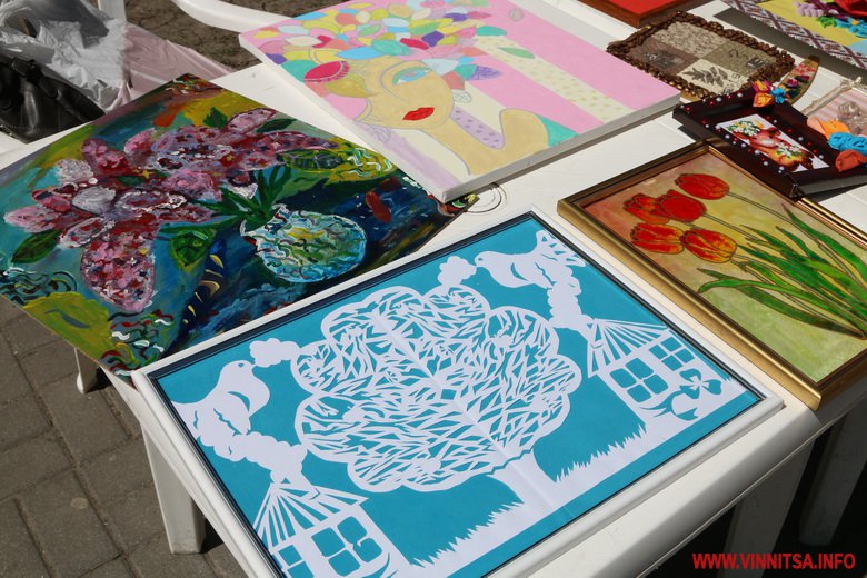 Біля Вежі виступають дитячі колективи. На столиках поруч проводять аукціон-виставку. Тут придбати дитячі вироби. А зібрані кошти з аукціону будуть витрачені на медобладнання для дітей.