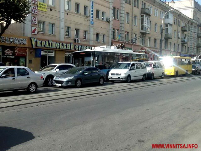 Як результат – вже традиційний від березня ранішній затор (саме тоді почали ремонтувати Київський міст), став ще більшим. «Тягучка» легковиків і громадського транспорту починається від «McDonald’s» на Соборній. Приватні автівки рухаються швидше, а от тролейбуси вишиковуються у довгі черги перед зупинками (по 4-5).