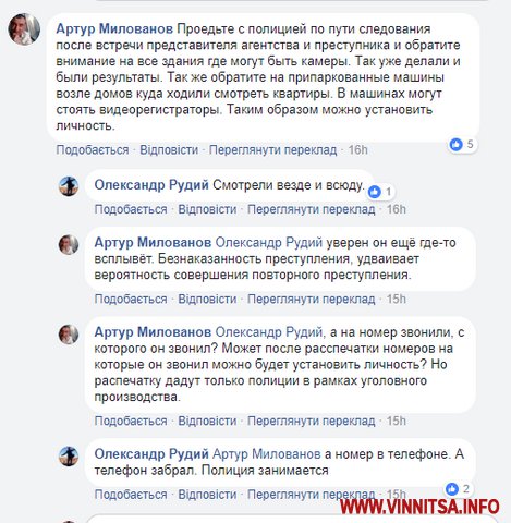 27 грудня у Вінниці по вулиці Магістратській псевдо-клієнт вдарив ріелтора по голові, вкрав телефон і гаманець та втік. Вінничани в соціальних мережах активно обговорюють цей випадок, місцеві колеги-ріелтори поширюють інформацію про зовнішній вигляд злочинця.