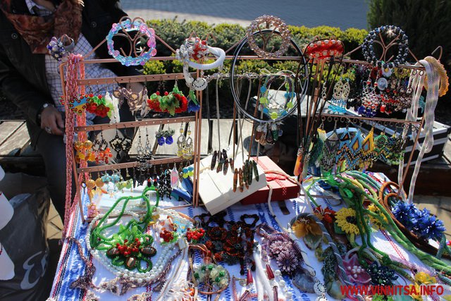 Близько 25 майстринь в центрі Вінниці продають свої вироби ручної роботи, це іграшки, сувеніри, прикраси, картини, вироби з дерева…