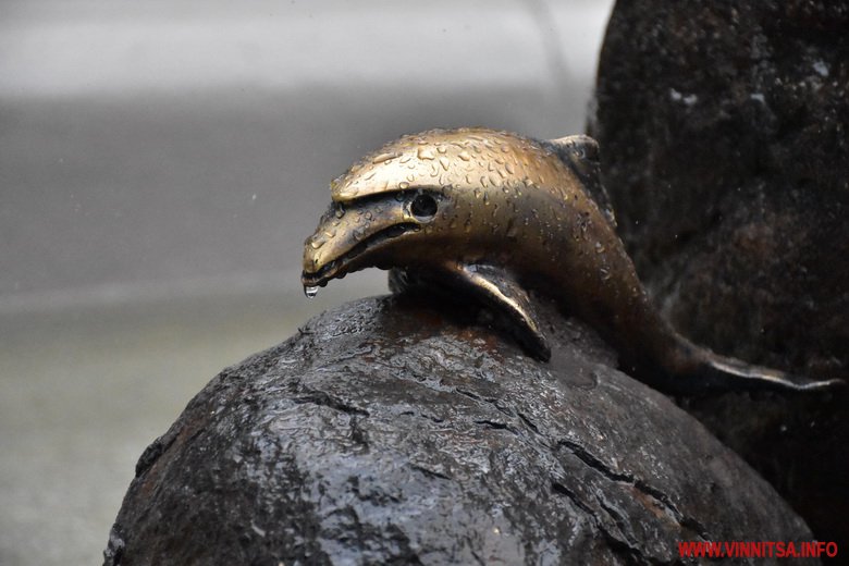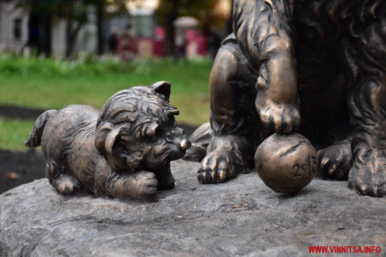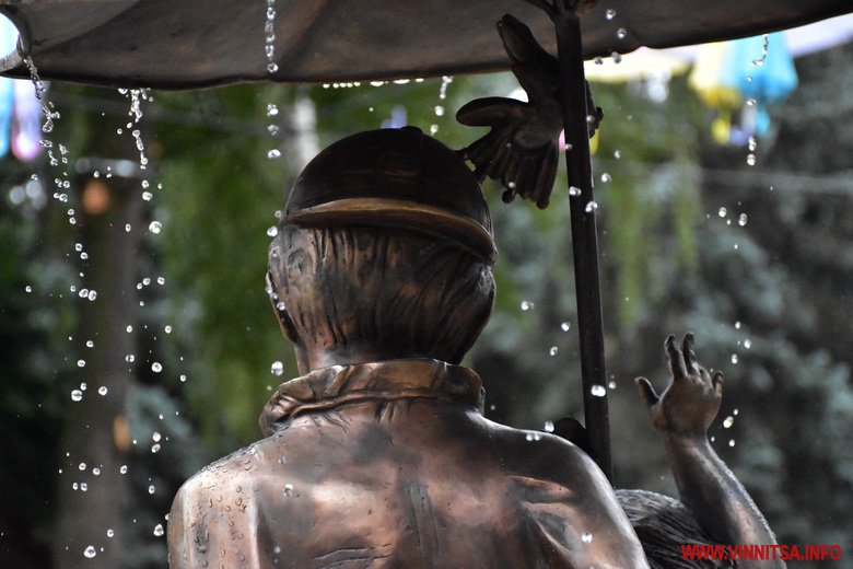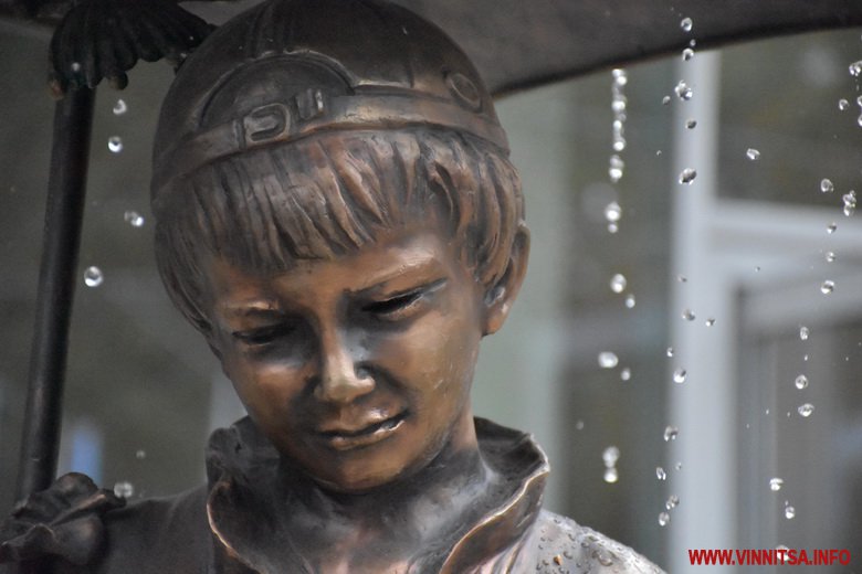 У Вінниці на Європейській площі біля нового дитячого кафе облаштували алеї і встановили дві скульптурні композиції з бронзи – дівчинка і хлопчик під парасолькою, з якої йде дощ та собака з двома цуценятами.