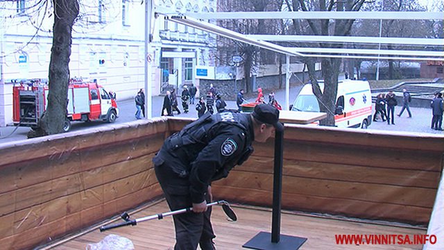 За словами начальника Вінницького міського відділу міліції Юрія Куцого, близько 13.30 на лінію «102» надійшла інформація від працівників кафе про те, що невідомий чоловік повідомив по телефону про бомбу у закладі.