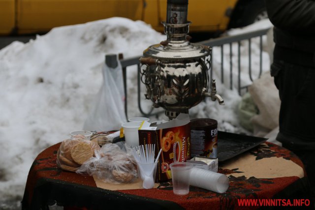 5 лютого на площі Небесної Сотні розмістили самовар з гарячим чаєм, поставили бочку, в якій розпалили багаття і підігнали бойовий автомобіль «швидкої». Люди сім'ями приносили для військових чай, печиво, теплий одяг і ковдри.