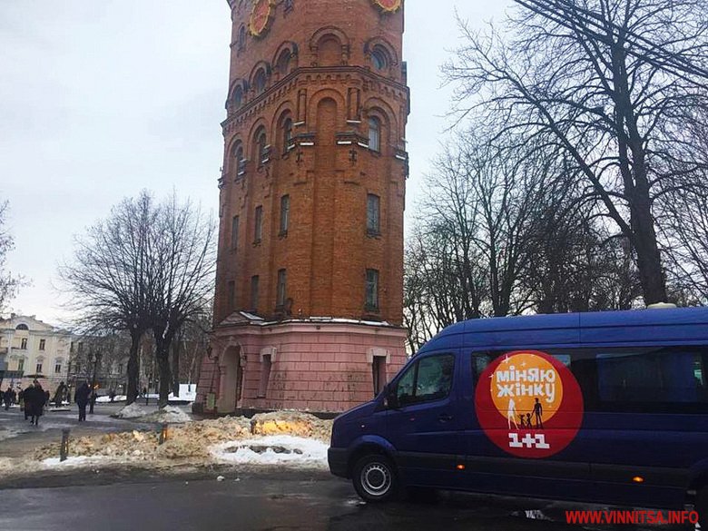 18 січня у Вінниці тривають зйомки популярної телепрограми «Міняю жінку». Близько 15:30 автомобіль каналу «1+1» припаркувався неподалік Вежі.