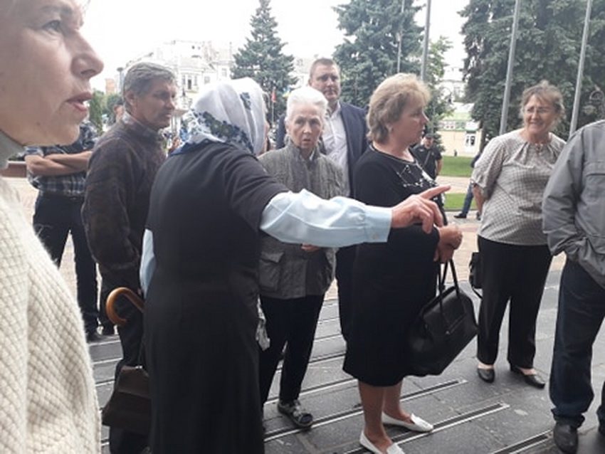 Жінки літнього віку, які проходили повз, обурювались нецензурному слову на плакаті. Вони ніби і підтримували протест, але критикували протестувальника за лайливі слова. На що той відповідав, що в слові «пиЗдять» не буква «З», а цифра «3».
