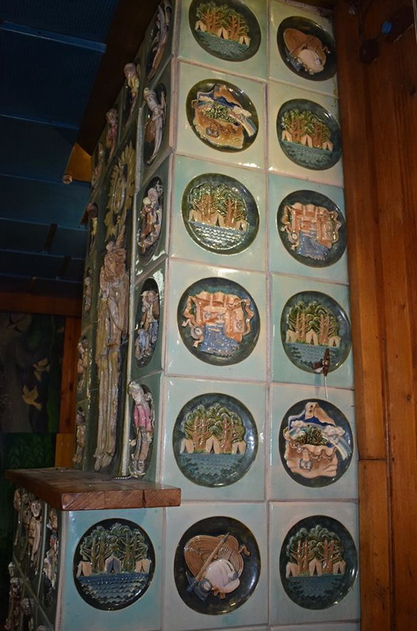 Сюжети не повторюються. Ліворуч та праворуч – природні рельєфи, якими найчастіше мандрують туристичні групи, чергуються із зображеннями спорядження, яке експедиції використовують у походах. Усі елементи – ручна робота. Камін входить до багатьох переліків видатних скульптурних творінь. Хоча для більшості вінничан є відкриттям і несподіванкою!