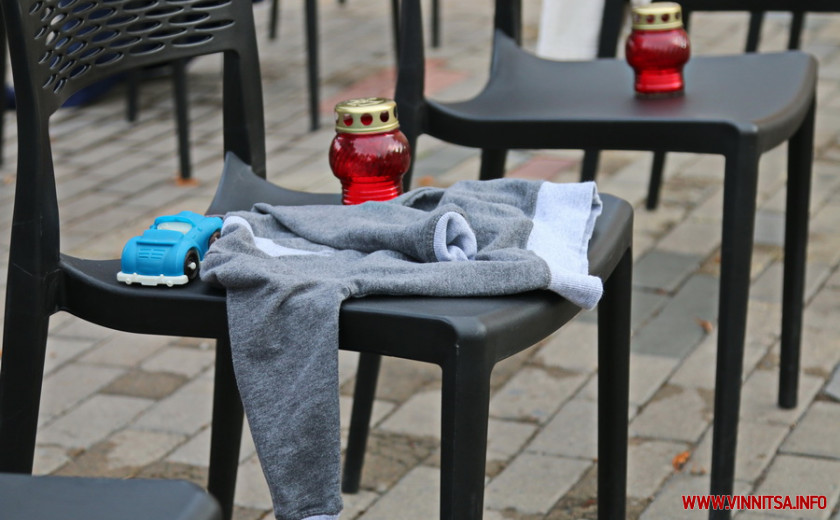 Також встановили 24 стільця з чоловічим, жіночим та дитячим одягом. За словами організаторів, 24 – тому що стільки за одну хвилину вмирало людей від голоду.