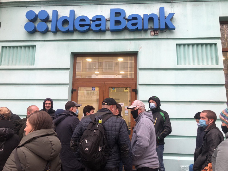 Люди кажуть, що банківське відділення, яке надає необхідні послуги одне на все місто, сьогодні перший день приймають оплати. В приміщення пропускають по одному клієнту. Он-лайн оплату за візи банк не проводить. Відповідно і зібралось від ранку багато людей.