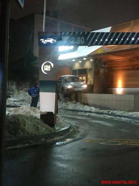 2 лютого в одному з мобільних додатків вінничани виклали фото, як на парковці ресторану самообслуговування «Макдональдс», що у Вінниці на Соборній, водій автомобіля «ВАЗ» виїхав на парапет.
