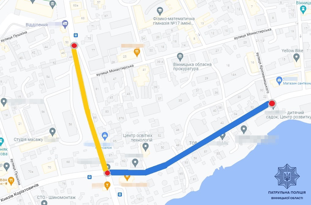 У Вінниці з 08:00 години 13 червня до 20:00 години 23 червня буде перекритий у зв'язку з проведенням робіт по капітальному ремонту одного з перехресть, патрульна поліція повністю перекриває рух для приватного транспорту на ділянках по вулицях Оводова та Князів Коріатовичів.