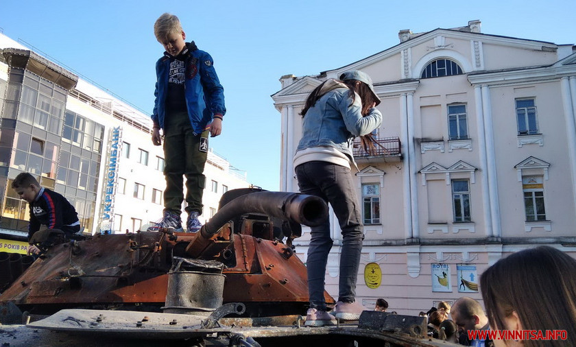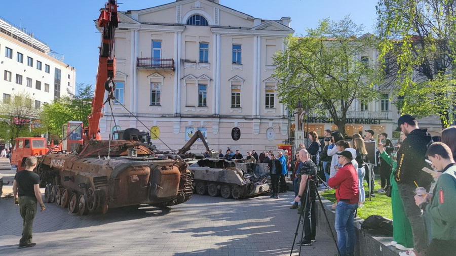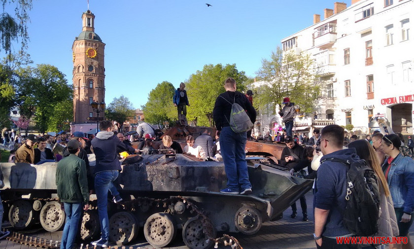 5 травня у Вінницю завезли знищену ЗСУ російську техніку. Трофейні бойові машини нині розвантажують на Європейській площі.