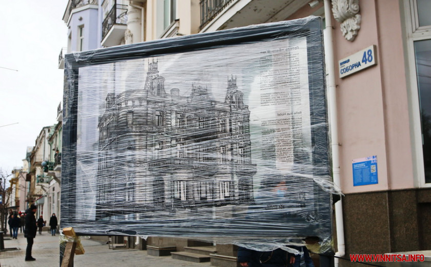 На табличці контурами зобразили, як колись виглядав готель. Зліва вгорі – коротка інформація: