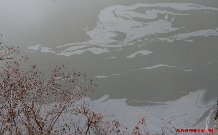 Сьогодні, 13 грудня, вінничани помітили маслянисті плями на річці Південний Буг. Цього разу - біля Староміського мосту.