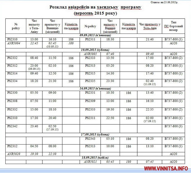 Протягом вересня з Вінниці до Ізраїлю можна буде дістатись літаком. З 9 по 18 вересня буде здійснено п’ять авіарейсів Вінниця – Тель-Авів – Вінниця. Квитки завчасно можна придбати у туристичних підприємствах міста.