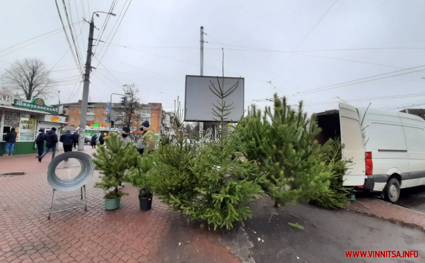 Від 15 грудня у Вінниці розпочалися новорічні ярмарки з продажу ялинок та іграшок. Близько 10 ранку, напроти ринку «Урожай», живі дерева пропонують лише з однієї машини.