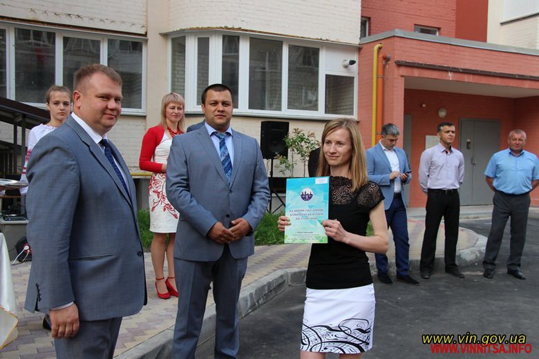 Привітати власників нових квартир із новосіллям завітали заступник голови обласної державної адміністрації Андрій Гижко, голова правління державної спеціальної фінансової установи «Державний фонд сприяння молодіжному житловому будівництву» Сергій Комнатний, завідувач сектору Державної служби України у справах ветеранів війни та учасників АТО Олег Дмитрійчук, директор Департаменту економіки і інвестицій Вінницької міської ради Віталій Погосян, керівник будівельно-монтажного управління ТОВ «БМУ – 2 – ЛТД» Юрій Диненберг.