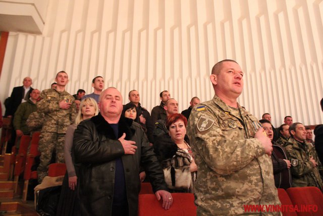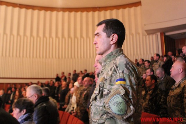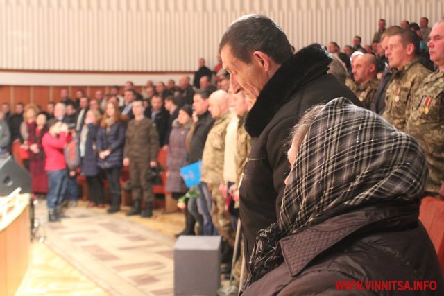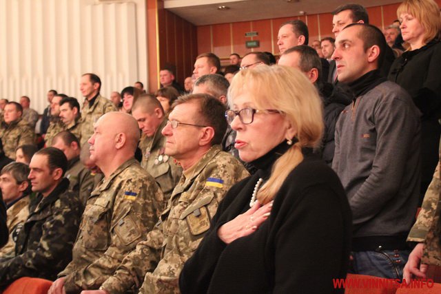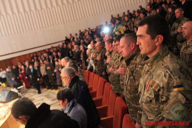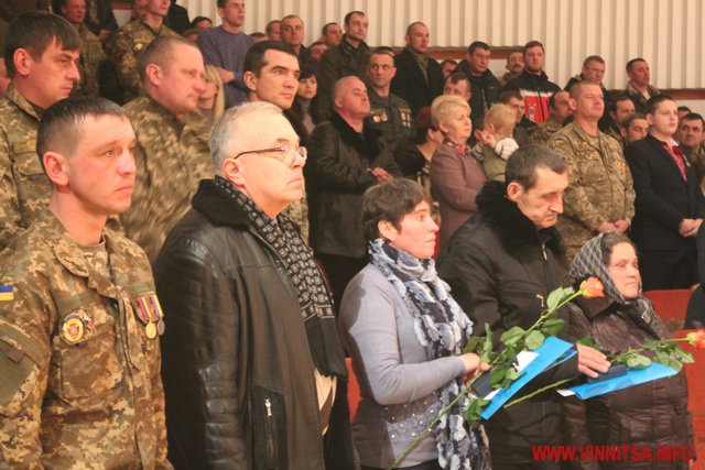 «Сьогодні формується історія нової України. І події, які ми пригадуємо, дивлячись на Дебальцево, були такими що перевернули уяву, відносно того, в якій ми з вами будемо жити країні. Дехто думає, що в Україні нічого не змінилось. Це не так. Відверто кажучи, коли приймаєш участь у важких траурних процесіях і дивишся в очі батьків, ти як ніколи розумієш, що ми в дуже великому гріху за те що відбулось в Україні. І політики, і посадовці… Я хочу Вам подякувати, мужики, за Вашу мужність. Тому що ви, карбуєте нову історію української держави. Ви чудово розумієте, що наш ворог хотів довести всьому світу, що українці не можуть обороняти свою країну. Але коли вони отримали «по зубах», то почали робити все щоб розхитувати країну з середини. Тому нам треба бути пильними і мудрими, бо від нас залежить дуже багато…», - сказав голова Вінницької облдержадміністрації Валерій Коровій.