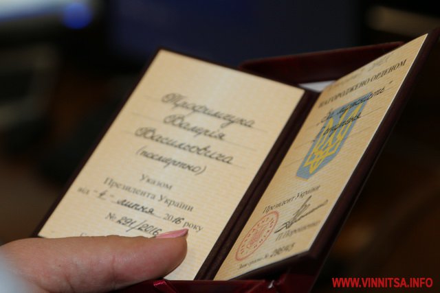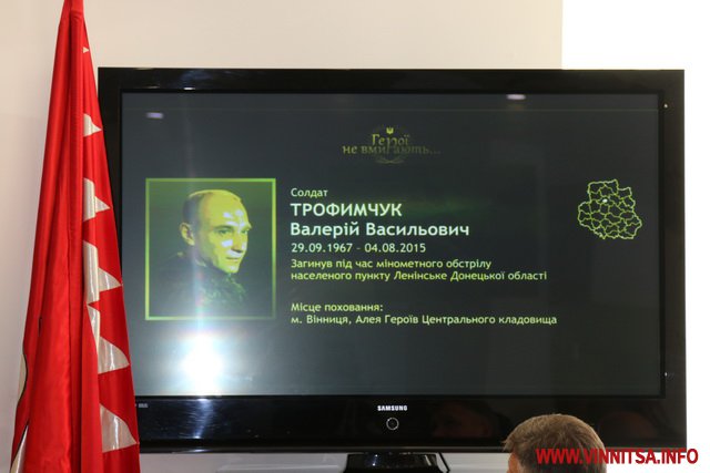 3 листопада у Вінниці дружині та доньці загиблого в АТО бійця Валерія Трофимчука вручили Орден «За мужність» ІІІ ступеню (посмертно).