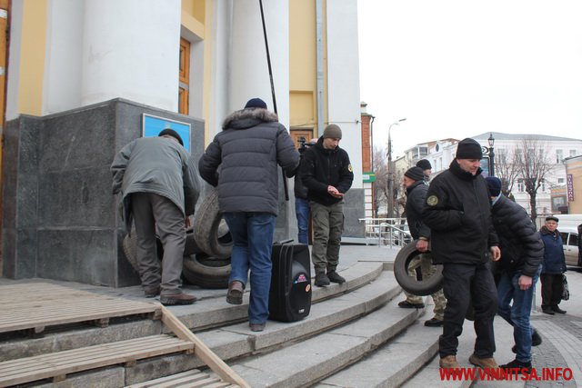 З 12 до 14 години у Вінниці провели пікет. Під стінами Вінницької ОДА привезли кілька десятків шин. Коли активісти їх намагалися запалити, поліцейські спробували їх зупинити. На кілька секунд зав’язалася сутичка.