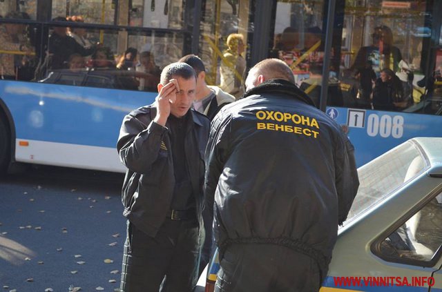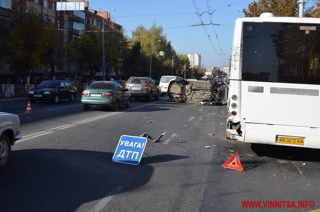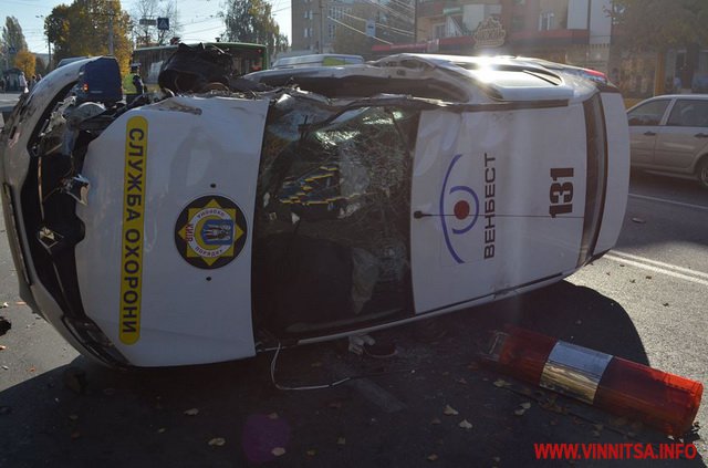 14 жовтня у Вінниці на зупинці 600-річчя автомобіль охоронної фірми «Венбест» на шаленій швидкості влетів в автобус, зачепив старий «Пасат» і перекинувся.