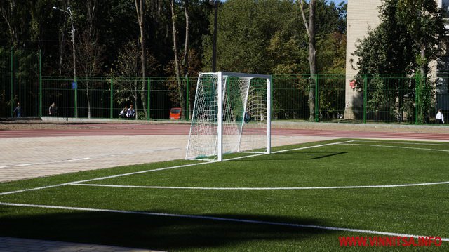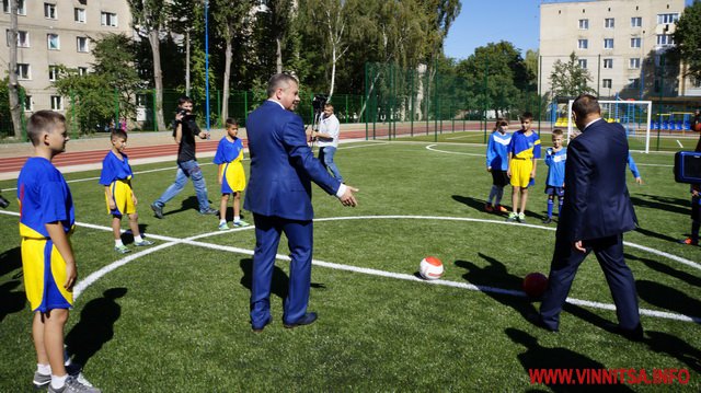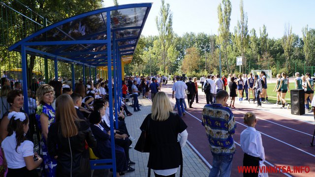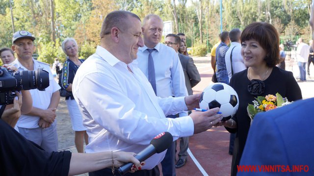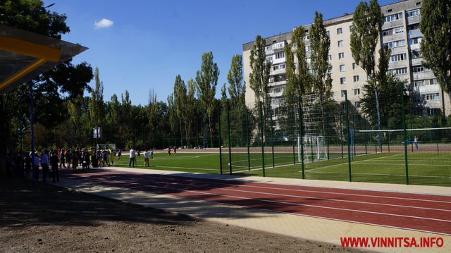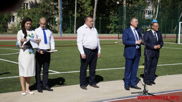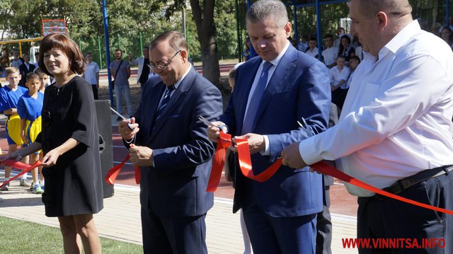 Новий стадіон сьогодні урочисто відкрили голова Вінницької облдержадміністрації Валерій Коровій, мер міста Сергій Моргунов та підприємець, який виступив інвестором будівництва Володимир Хоменко та директор школи Світлана Куца. Вони перерізали стрічку, а Моргунов, Корові та Хоменко забили «перший гол» у футбольні ворота.