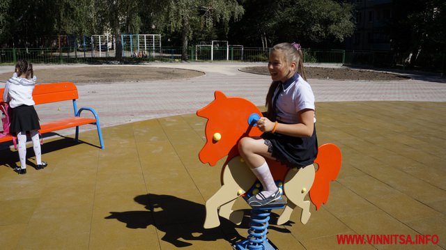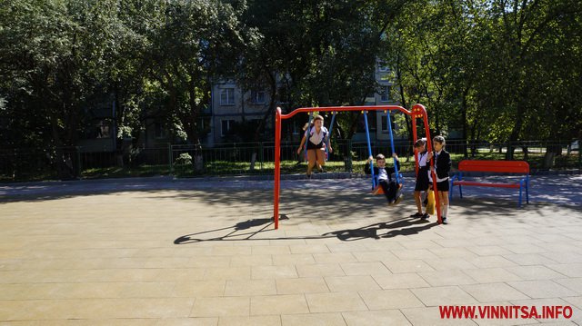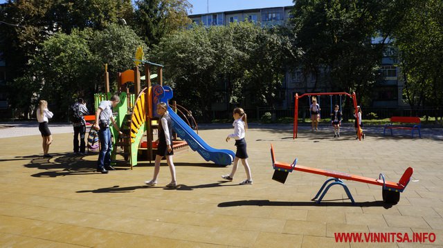 Директор школи Світлана Куца проводить екскурсію по спортивних та дитячих майданчиках, показує роздягальню та каже що дуже вдячна інвестору за такий подарунок для школи, який зробив все в досить стислий термін, адже роботи почались в другій половині червня, а першого вересня все вже готово, залишилось досадити клумби біля дитячого майданчика.