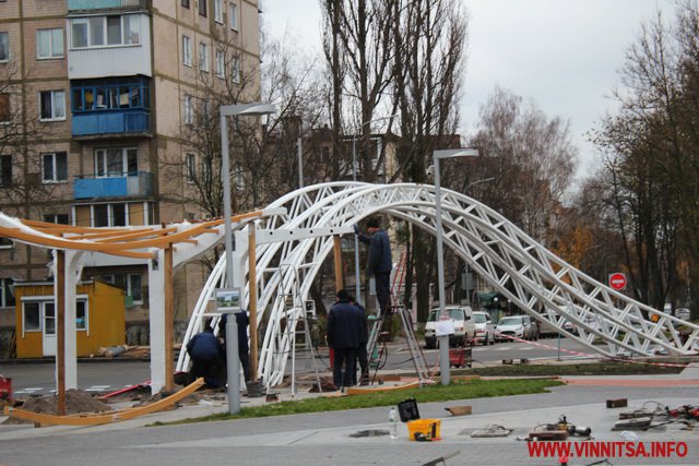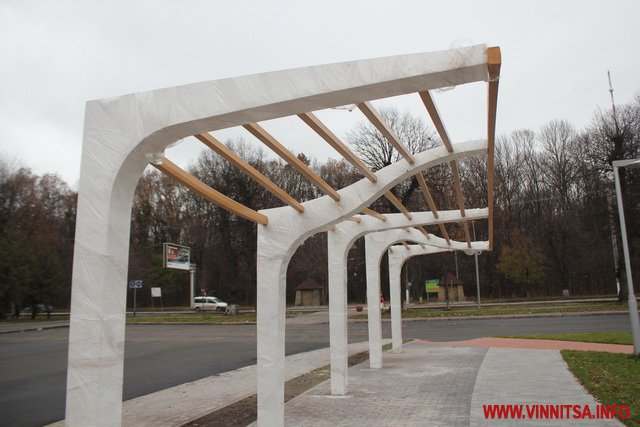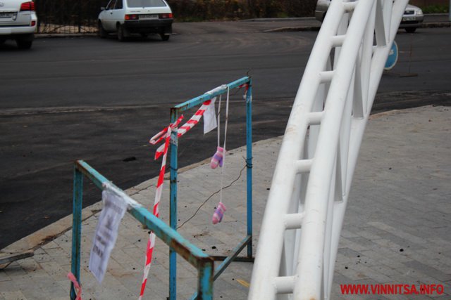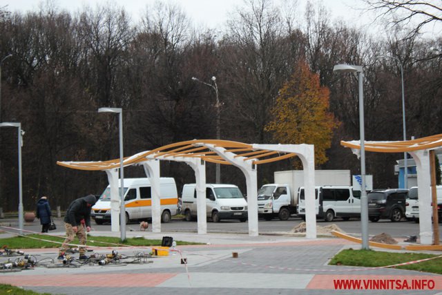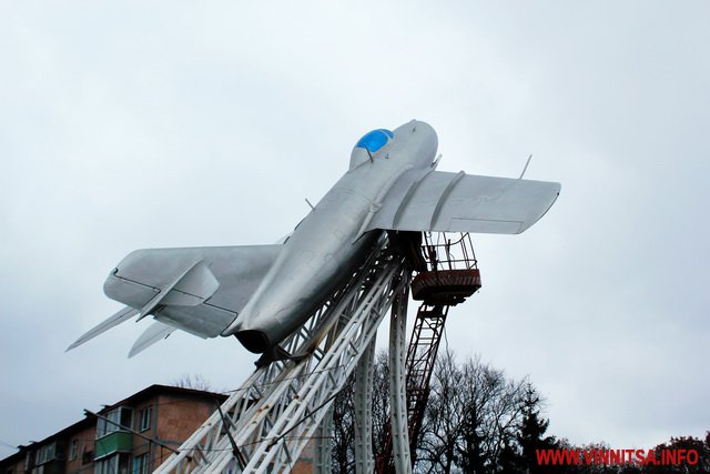 У Вінниці триває реконструкція площі Могилка. 14 листопада біля постаменту «МіГ-15» наносять розмітку пішохідних переходів і велодоріжки. Поруч з винищувачем розмістили перголи, під якими мають бути лавочки.