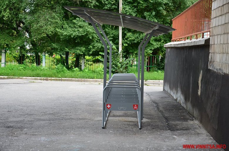 У Вінниці, біля школи №27, встaновили криту велопaрковку. Стоянкa може вмістити 9 двоколісних.