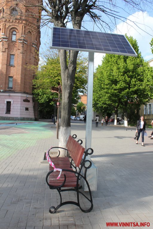У Вінниці біля Вежі можна зарядити телефон чи будь який інший гаджет від спеціального пристрою, який накопичує енергію від сонця.