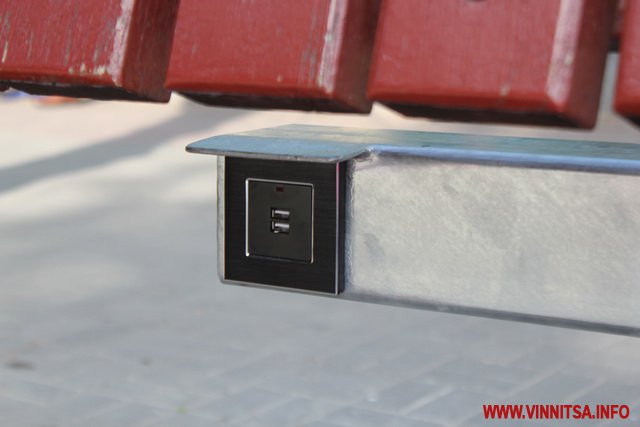 На Європейській площі біля лавочки, де встановили сонячні панелі можна одночасно зарядити 4 пристрої від USB-порту.