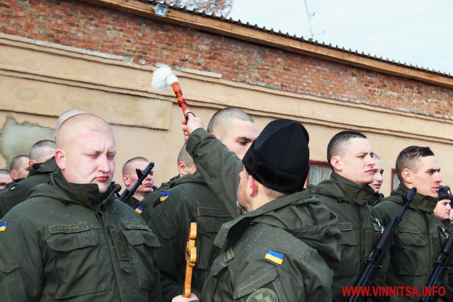 Отець Михаїл окропив святою водою нацгвардійців.