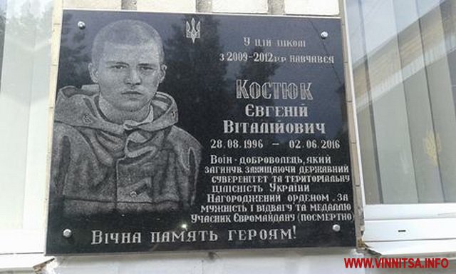 25 травня у Вінниці на будівлі загальноосвітньої школи №11 відкрили меморіальну дошку загиблому бійцю АТО Євгену Костюку.