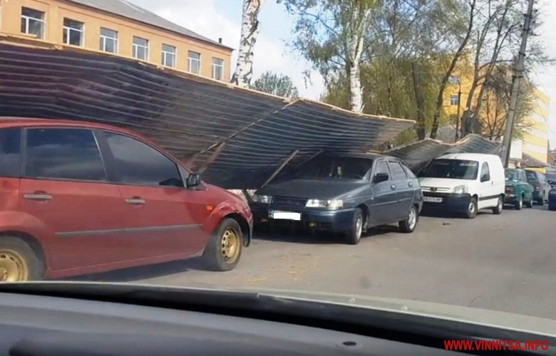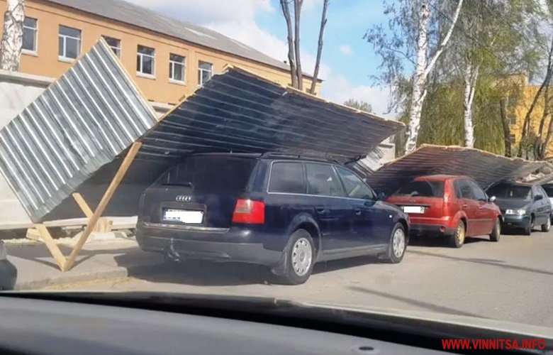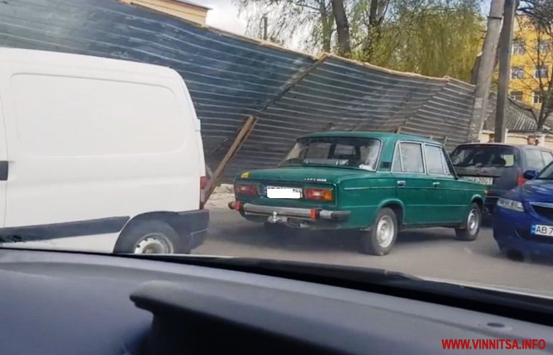 «Проїжджав там годину тому. Паркан, який був навколо військової частини 3008, впав на автівки», - розповів вінничанин Володимир.