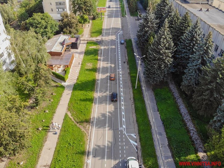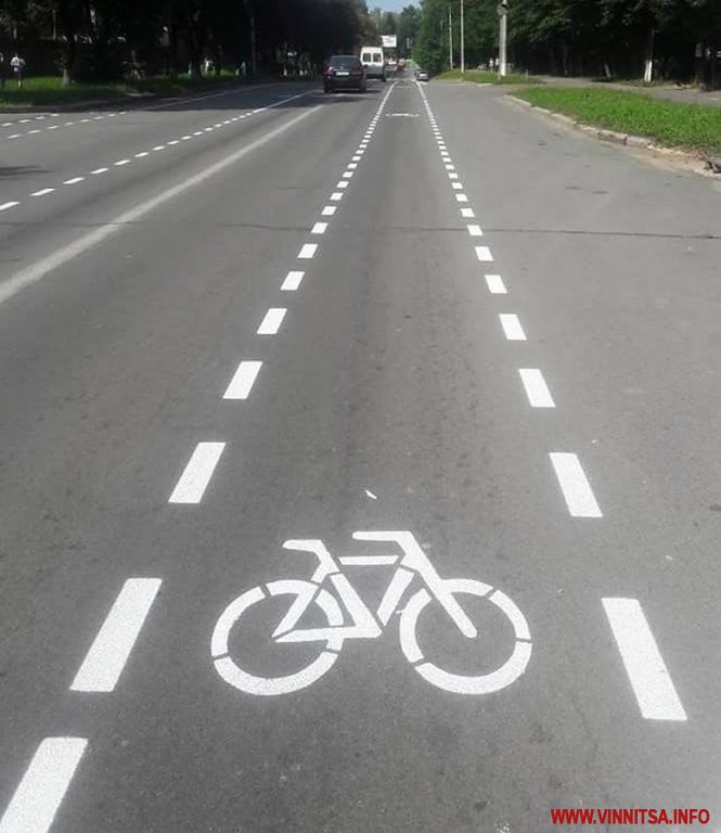 У Вінниці в межах проїжджої частини облаштували велосмугу по вулиці Воїнів-Інтернаціоналістів – від Келецької до Хмельницького шосе. Нанесена відповідна розмітка.