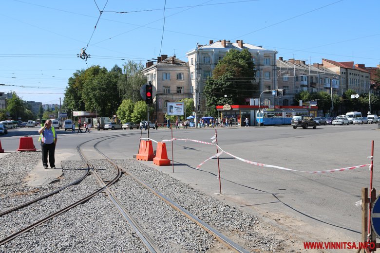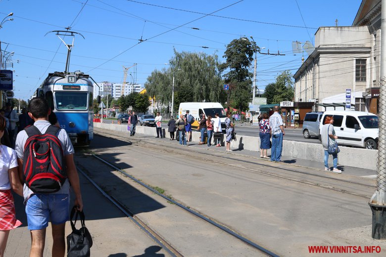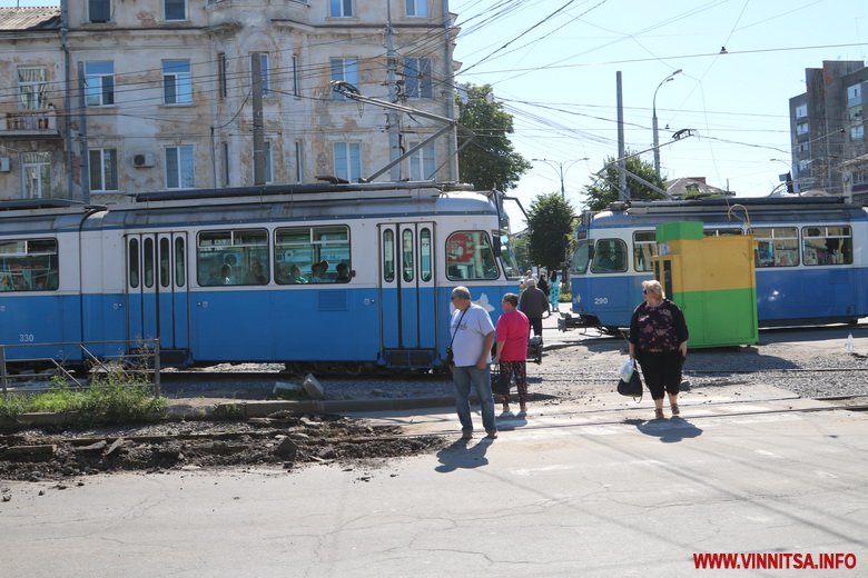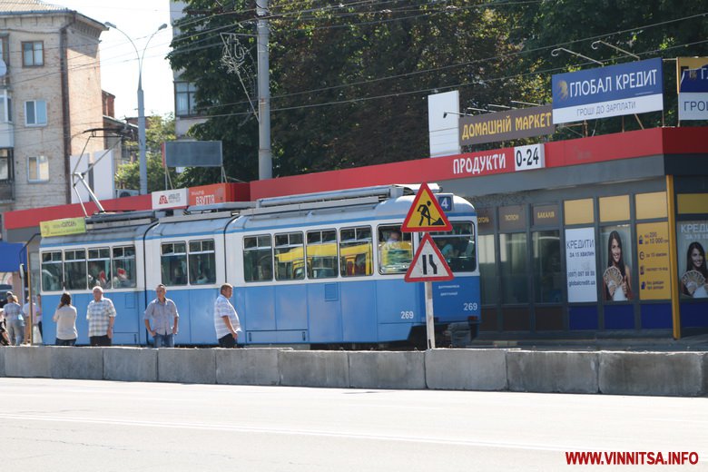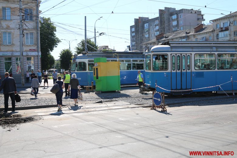 Зранку трамваї почали рухатися у реверсному режимі. Якщо їхати зі сторони залізничного вокзалу, то доведеться пропустити дві зупинки: «Педагогічний університет ім. Коцюбинського» і «Майдан Перемоги», адже трамвай змінює напрямок руху. Вийти можна тільки біля Будинку офіцерів – там зробили тимчасову зупинку, відгородивши бетонними блоками частину дороги.