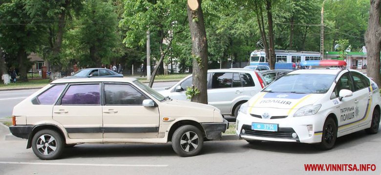 У Вінниці на Хмельницькому шосе патрульна поліція майже добу чергує біля автомобіля ВАЗ 2109, який ланцюгом прив’язали до липи. Автівку прикували до дерева активісти Дорожнього контролю аби її не забрали поліцейські. Як з’ясувалось, власник автомобіля, на якому зареєстровано авто, має борг, але продав її по дорученню іншій людині.