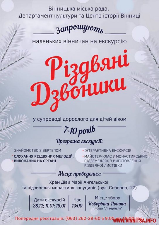 Екскурсії відбуватимуться: 28 грудня, 11 січня, 18 січня.