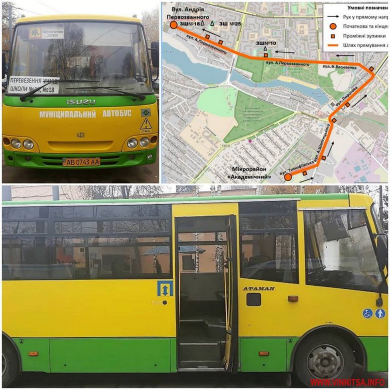 «Вже місяць діток з мікрорайону «Академічний» вранці на навчання підвозить «шкільний автобус». Щодня це близько 30 учнів, які ходять до шкіл №№ 10, 18 та 25. Зранку автобус відправляється з вулиці Тимофіївської, а кінцева його зупинка – Андрія Первозванного.