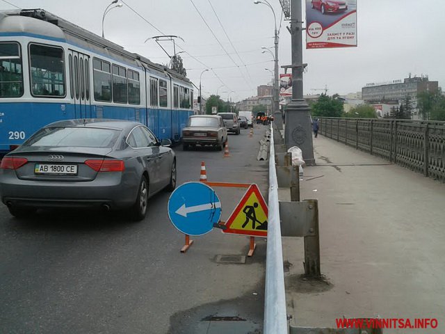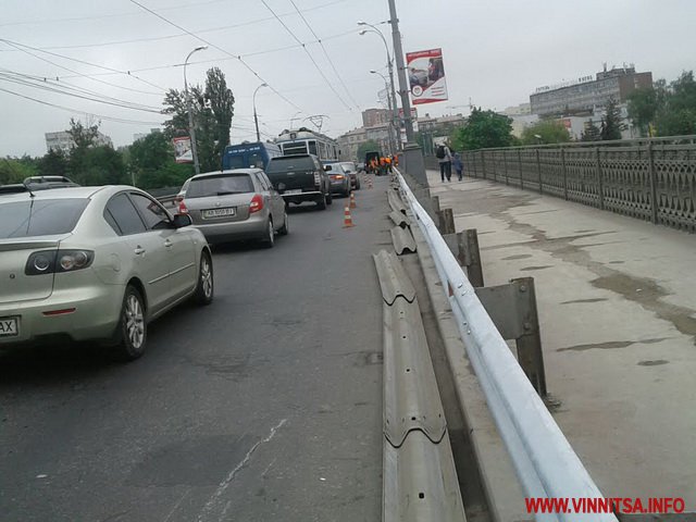 Через ремонтні роботи рух транспорту по мосту ускладнений, у зв’язку з чим є незначні затори.