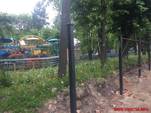 У Вінниці продовжують зводити огорожу навколо центрального парку. Зі сторони вулиці Магістратської залишають в’їзд до Літнього театру та до автопарковки. Для пішоходів залишили три зони для проходів.