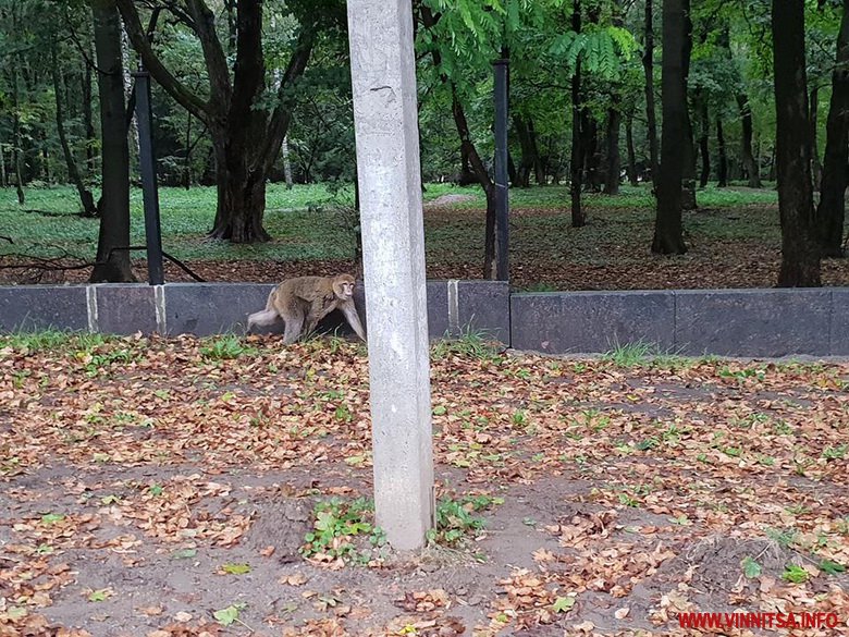 Люди бачили, що примат побіг в сторону «Книжки». Згодом виставили у «Фейсбук» його фото в районі «Райдуги», біля паркану.
