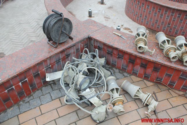 «Зараз ми встановлюємо обладнання, яке знімали перед зимою, миємо його, очищаємо, перевіряємо. Знімаємо не через холодну погоду, а через те, що наші люди «варвари». Тільки в цьому фонтані - «Мушля» обламали 6 штук ліхтарів з 30, а ще плити розбили в кількох місцях. Це все молодь, яка катається на скейтах », - обурюється чоловік.