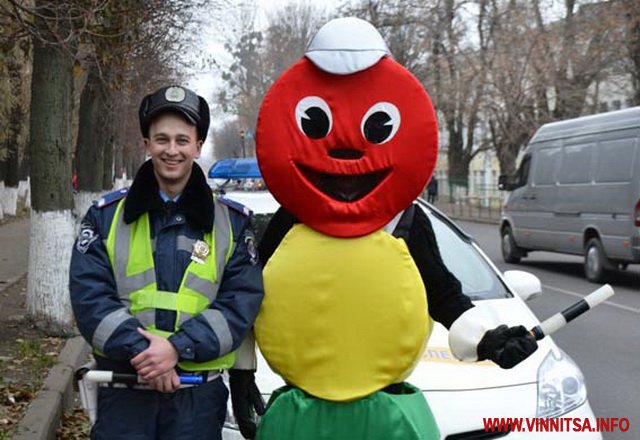 Тож працівники ДАІ вийшли на вулиці обласного центру разом з «Інспектором Світлофором», щоб роз’яснити дітям та дорослим необхідність перетину проїзної частини дороги по пішохідному переходу, а у разі наявності світлофора – лише на зелене світло.