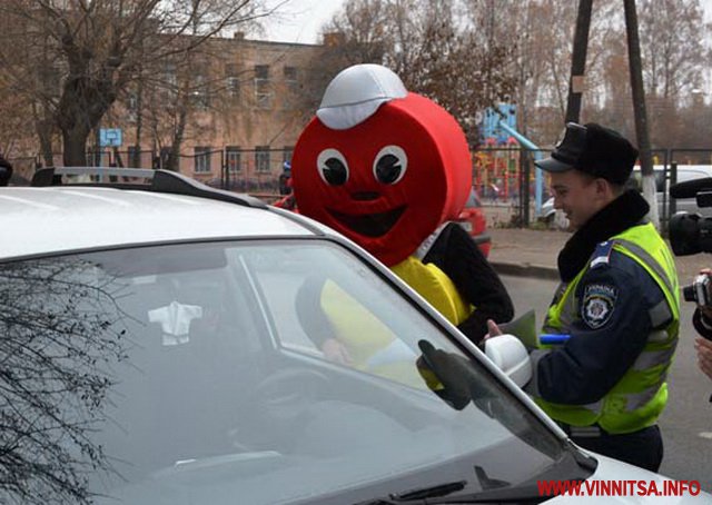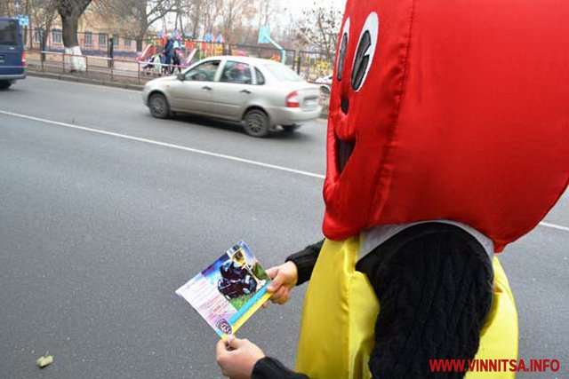 Не залишились поза увагою незвичайного регулювальника і водії транспортних засобів. Керманичам автомобілів «Інспектор Світлофор» вручав інформаційні листівки, де зазначена відповідальність за проїзд на забороняючий сигнал світлофора та за керування транспортним засобом в стані алкогольного сп’яніння. Саме такі порушення правил дорожнього руху найчастіше призводять до автомобільних аварій з тяжкими наслідками.