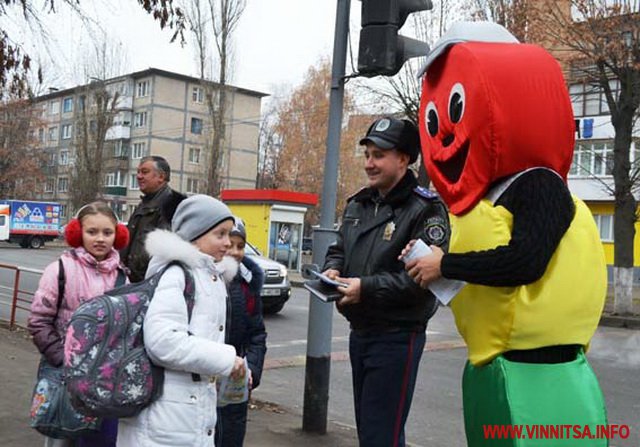 В рамках тижня безпеки дорожнього руху, працівники Державтоінспекції Вінниччини разом з «Інспектором Світлофором» проводять профілактичну роботу з пішоходами та водіями, які порушують правила дорожнього руху.